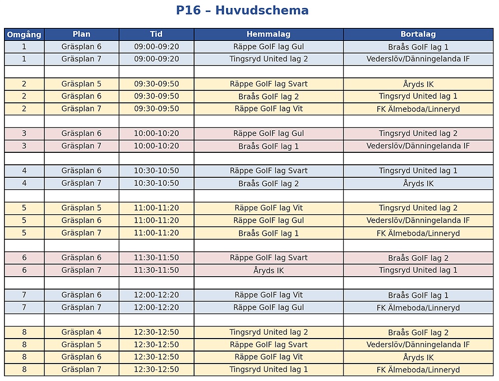09:30–09:50 – Tingsryd United lag 1 – Gräsplan 6