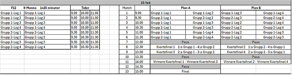 Söndagen den 15 Februari– 9-mannafotboll för flickor födda 2012 -F12